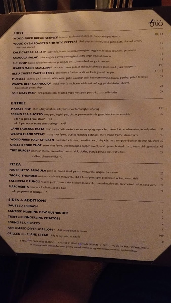 With a thoughtfully curated menu, Trio | An American Bistro excels in delivering a range of flavors that cater to various tastes and preferences, all served in a cozy and inviting atmosphere.
